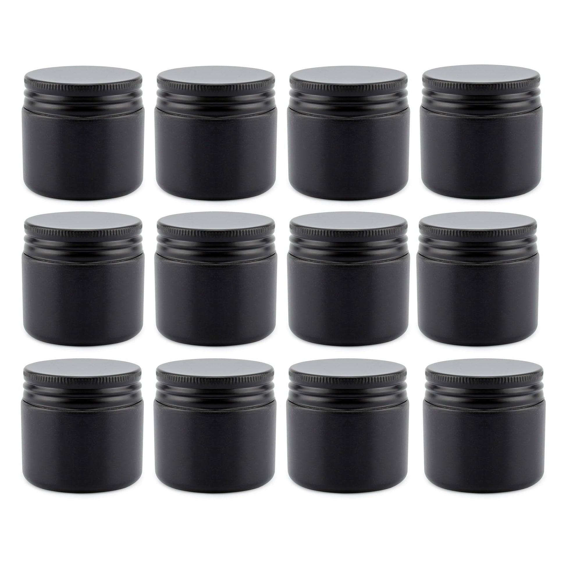 Cornucopia 2-Ounce Black Coated Glass Jars (12-Pack); Cosmetic Jars with Black Metal Lids and Black Matte Exterior