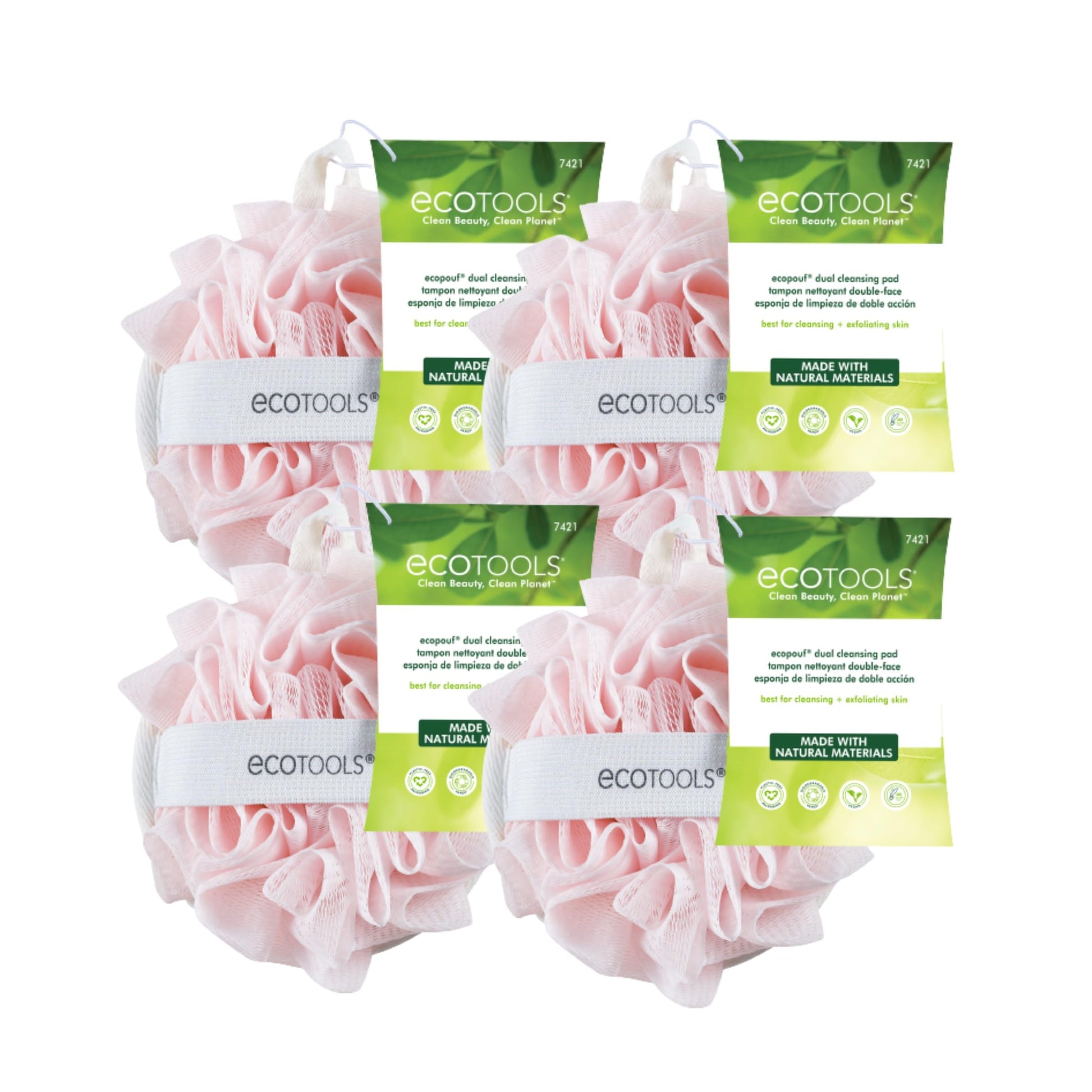 - The EcoTools EcoPouf Dual Cleansing Pad is designed with a synthetic material and 100% recycled netting that works to cleanse and exfoliate the skin