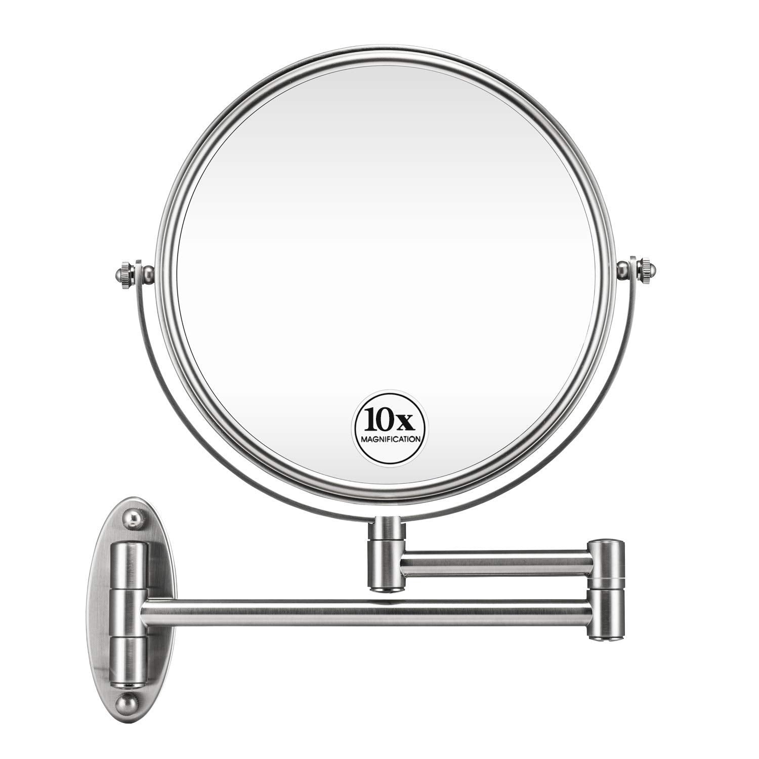 GloRiastar 10X Wall Mounted Makeup Mirror - Double Sided Magnifying Makeup Mirror for Bathroom, 8 Inch Extension Brushed Nickel Mirror Finished