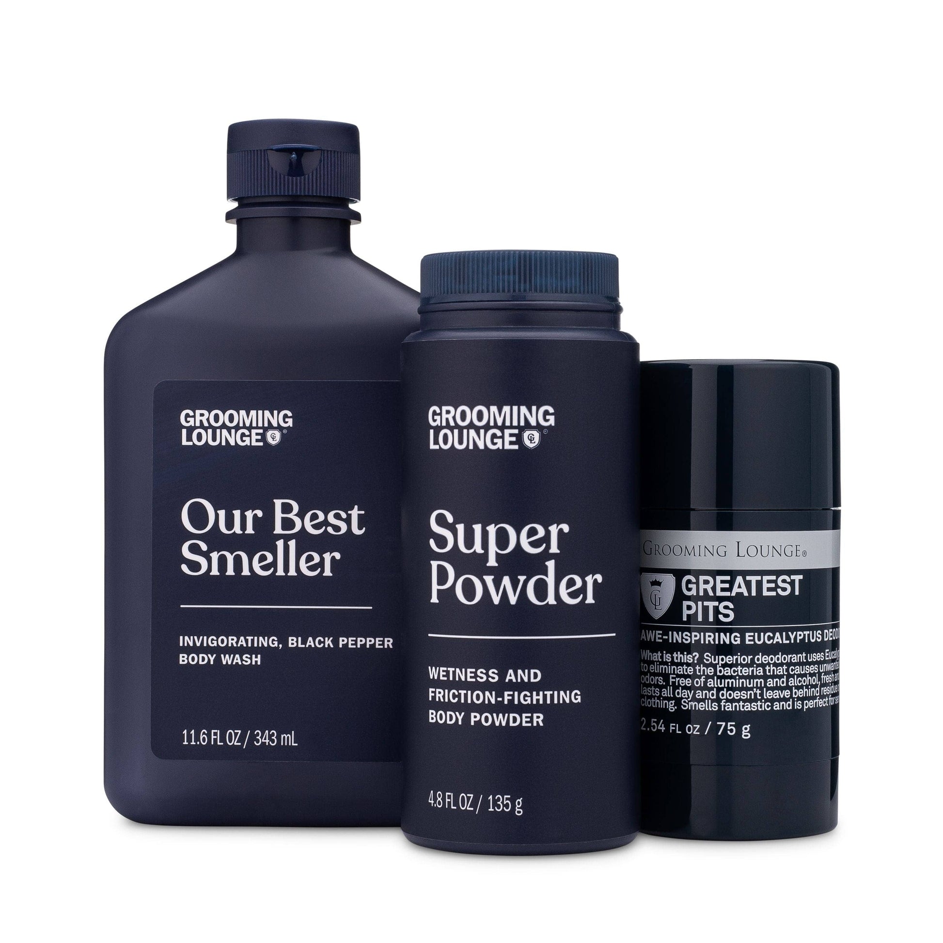 The Core Values Body Care Set contains everything a man needs to keep his core smelling great and feeling fresh with some serious shavings to boot ($14 savings -- hence the "core value"). Includes our signature body wash, body powder and stench-busting deodorant. A perfect grooming set for upping any man's personal aroma.