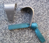 Cam Hooks are used to smoothly make quick progress up cracks. The use of applied leverage transfers bodyweight into holding force against the rock. Place protection pieces as if you are free climbing. Climb past funky placements with clean “finger locks” of metal. The over-bent hook has a subtle hourglass-shaped tip that locks into cracks and pin scars. Smooth surfaces around webbing tie-off hole reduces webbing wear. Patterned after Ed Leeper’s amazing design.