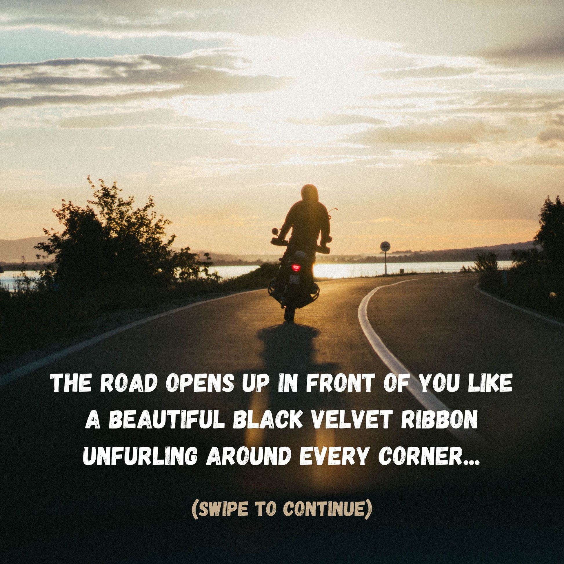 The road opens up in front of you like a beautiful black velvet ribbon unfurling around every corner. It disappears and reappears in the mist far ahead of you. “Stay sharp,” you think to yourself. No margins for error.